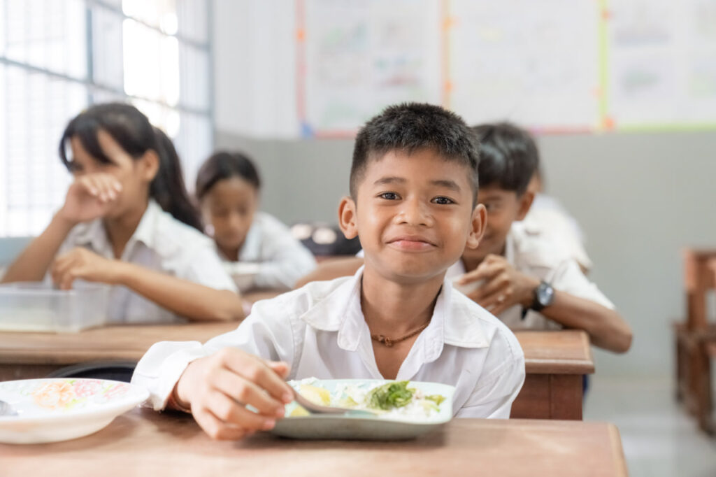 គិតត្រឹមដើមឆ្នាំ ២០២៦នេះកម្មវិធីផ្តល់អាហារតាមសាលារៀនដោយប្រើប្រាស់កសិផលក្នុងសហគមន៍ បាន និងកំពុងអនុវត្តតាមសាលារៀនគោលដៅចំនួន ១ ១១៤ ក្នុងតំបន់មានភាពងាយរងគ្រោះ និងអសន្តិសុខស្បៀង។ក្នុងនោះក្រសួងអប់រំ យុវជន និងកីឡា អនុវត្តកម្មវិធីនេះនៅសាលារៀនគោលដៅចំនួន ៨១៦ ដោយប្រើប្រាស់ថវិកាជាតិ និងសាលារៀនគោលដៅចំនួន ២៩៨ ផ្សេងទៀតកំពុងអនុវត្តដោយកម្មវិធីស្បៀងអាហារពិភពលោក (WFP)។
