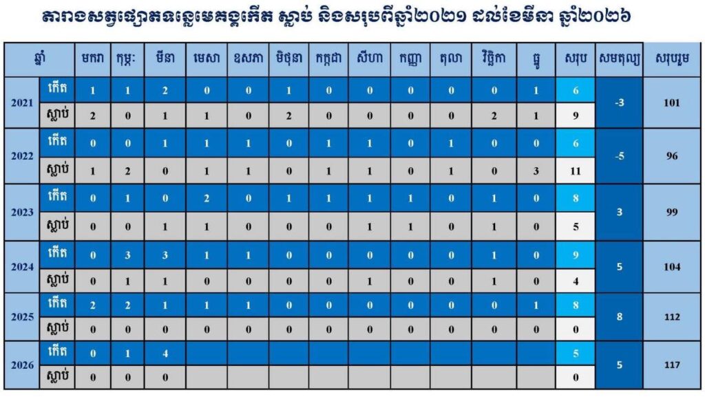 ចំនួនកូនផ្សោតនៅទន្លេមេគង្គ បន្តកើនឡើងដល់ ១១៧ក្បាល បន្ទាប់ពីកូនផ្សោតថ្មី ១ក្បាល ត្រូវប្រទះឃើញដោយក្រុមការងារស្រាវជ្រាវនៃអគ្គនាយកដ្ឋានជលផល ខណ្ឌរដ្ឋបាលជលផលក្រចេះ និងអង្គការ WWF កាលពីថ្ងៃទី៣១ ខែមីនា ឆ្នាំ២០២៦។